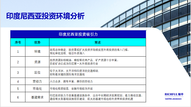 作為有資深的中企全球化發展一站式專業服務機構,RICHFUL瑞豐可竭誠為您提供出海印尼全方位的支持與定制化解決方案,以確保您的投資項目順利展開,實現預期的商業目標。
