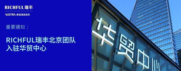 自2025年5月1日起,RICHFUL瑞豐北京團隊入駐朝陽核心商務區華貿中心,以升級的辦公環境和資源整合,開啟專業服務新里程!