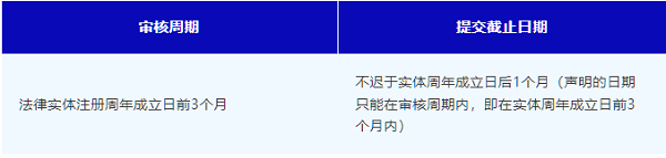 大型實體和非大型非控股實體必須準備年度財務總結,并保存在其注冊辦公室。常見截止日期: